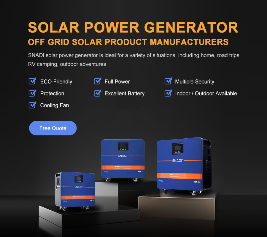 El generador de energía solar es un sistema portátil y autónomo que incluye todos los componentes necesarios para generar y almacenar energía solar. Por lo general, consta de un panel solar, una batería, un controlador de carga y un inversor, todos alojados en una sola unidad. Cuando se requiere electricidad, el inversor convierte la electricidad de CC almacenada en la batería en electricidad de CA, que se puede usar para alimentar aparatos y dispositivos. El generador de energía solar todo en uno generalmente incluye enchufes y puertos USB para conectar dispositivos. El generador de energía solar es una forma conveniente y ecológica de generar y almacenar energía solar Energía. Es portátil, fácil de usar y puede proporcionar energía en ubicaciones remotas o durante cortes de energía, adecuado para diferentes ocasiones.