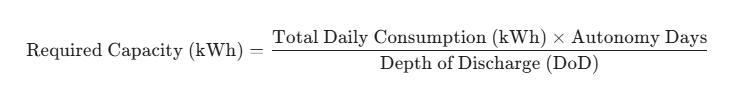Esta ecuación tiene en cuenta cuánta energía utiliza diariamente, cuántos días necesita para sobrevivir sin ningún aporte solar y los límites físicos de la química de su batería. En 2026, la mayoría de los sistemas avanzados utilizarán la tecnología de fosfato de hierro y litio (LiFePO4), que permite una alta profundidad de descarga, que a menudo alcanza el 90 por ciento o más sin comprometer la vida útil.